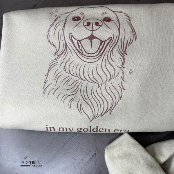 Celebrate the season of life made sweeter by your dog with this exclusive In My Golden Era crewneck. Featuring a hand-drawn outline of Carter James himself, this warm brown design printed on a sand crewneck offers a cozy, meaningful, and minimal aesthetic. Soft, durable, and perfect for everyday wear — it’s a must-have for dog moms living in their golden era.