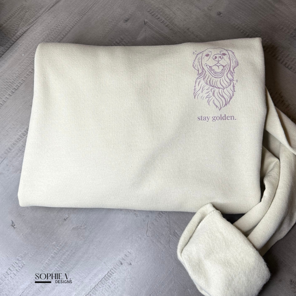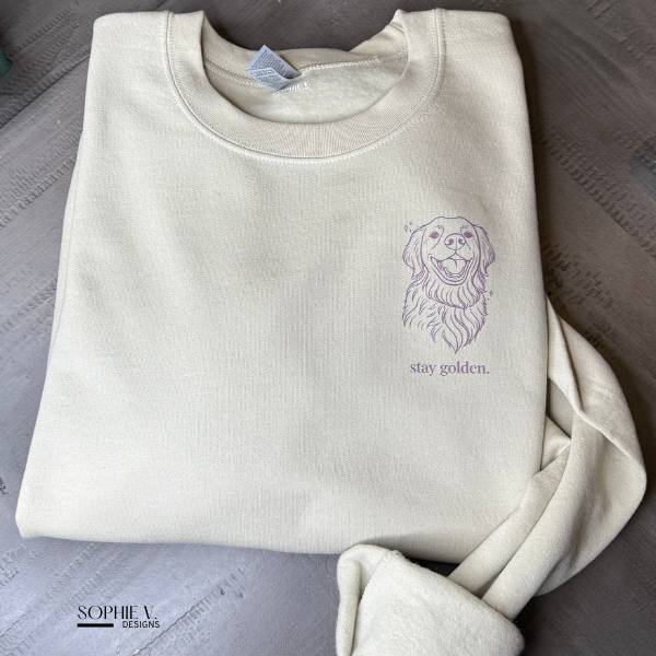 A cozy, everyday crewneck featuring a minimalist left-chest design of Carter James and the phrase “stay golden.” Printed in warm brown ink for a subtle, elevated look, this sand crewneck blends comfort, quality, and a neutral dog-mom aesthetic. A timeless staple you’ll reach for again and again.